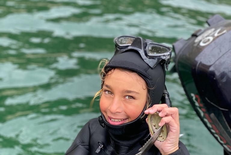 Many of our charters are families with children. Our captain goes out of his way to give kids the best day out ever. Pods of dolphins and whales are commonly seen on crossings. There are protected coves with stellar, shallow snorkeling for kids and deserted beaches for shells and fishing floats. For kids keen to wet a line, jacksmelt and other baitfish are easily caught in kelp beds. When parents are keen to both spear/dive and keep the kids occupied, we can post up on spots good for everyone. All we ask is one parent or caregiver remain with kids at all times.